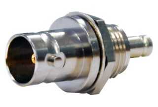 Панельный адаптер с гайкой, BNC <гнездо/мама> - DIN 1.0/2.3 <гнездо/мама>, для передачи видео сигнала