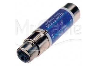 Кабельный адаптер трансформатор 110 - 75 Ом, XLR3 <гнездо/мама> - BNC <гнездо/мама>, с нерегулируемым аттенюатором, затухание 10 дБ.