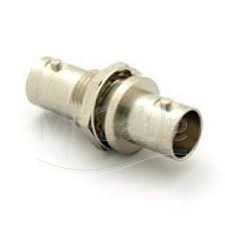 Панельный разъем BNC, проходной, <гнездо/мама> - <гнездо/мама>, крепление на панель - гайка, металлический никелированный корпус, центральный контакт - покрытие золото, 50 Ом.