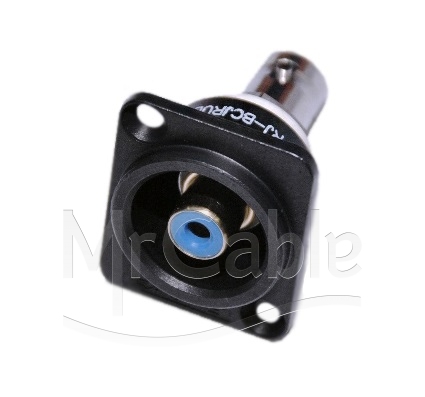 Панельный адаптер RCA <гнездо/мама> - BNC <гнездо/мама>, с фланцем стандарта D- типа со стороны RCA, с обратной стороны BNC, металлический никелированный корпус, 75 Ом, цвет: черный.