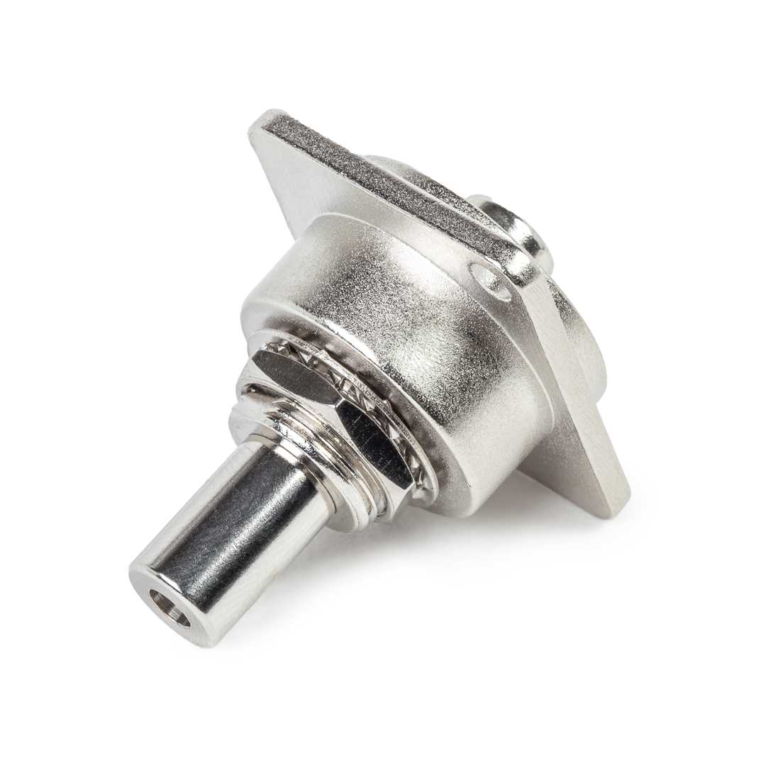 Панельный адаптер, Jack 3.5 stereo <гнездо/мама> - Jack 3.5 stereo <гнездо/мама>, фланец D-типа, металлический корпус, контакты - покрытие никель