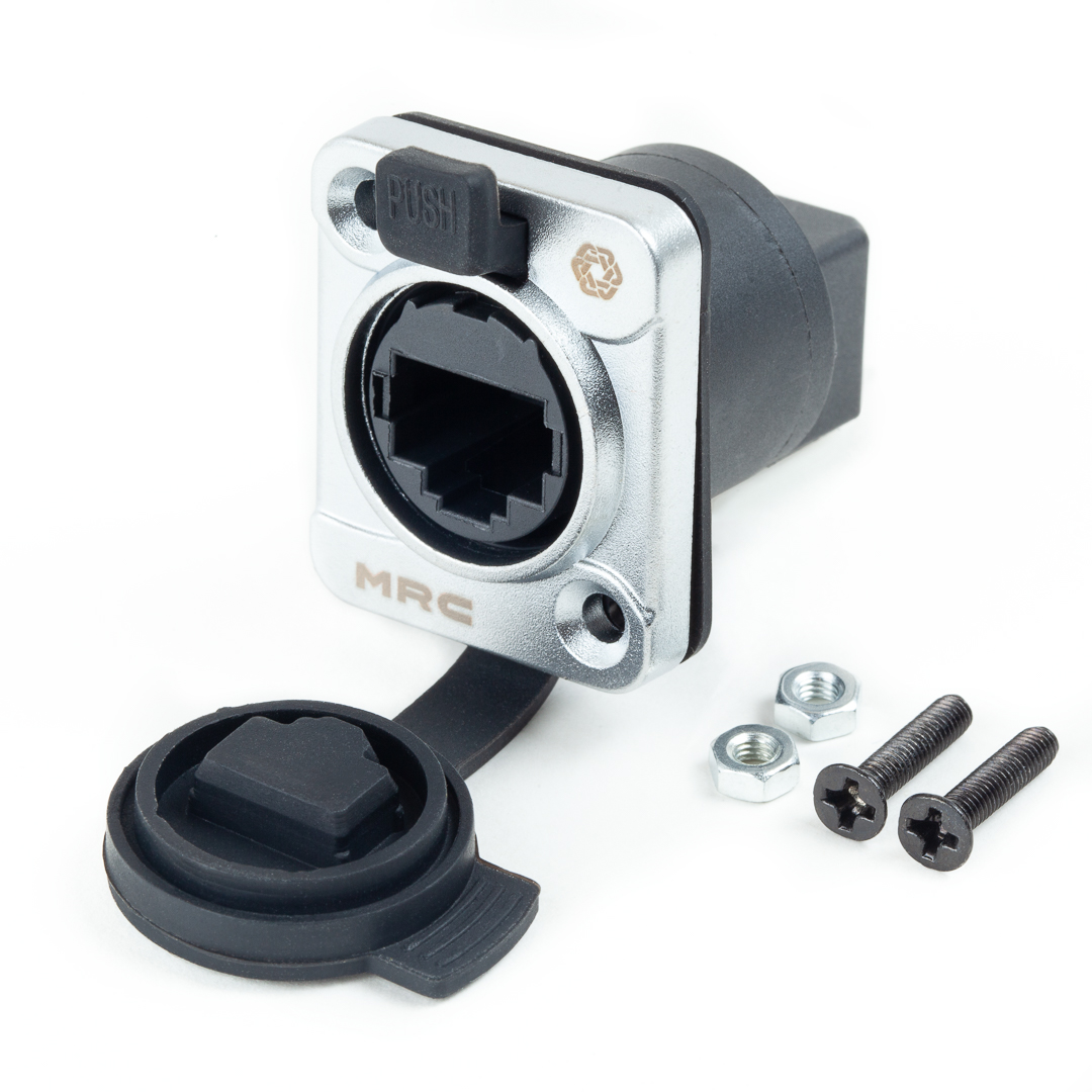 Панельный адаптер, угловой, RJ45 EtherCON <гнездо/мама> - <гнездо/мама>, проходной, D-серия, разработанный специально для наружного применения в суровых условиях, прочный герметичный корпус, металлический никелированный фланец D-типа. Особенно устойчив к УФ-излучению, влагозащищенность соответствует классу защиты IP65. Крепежные винты в комплекте. Внимание! Не совместим с кабельными разъемами Neutrik CAT6 NE8MC6-MO и NKE6S *