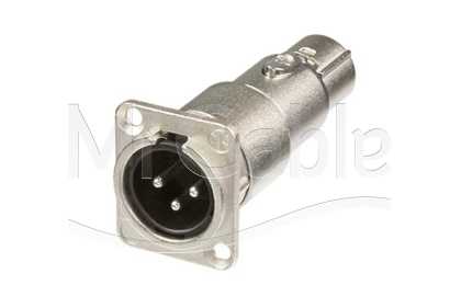 Панельный адаптер, XLR 3 <штекер/папа> - XLR 3 <гнездо/мама>, фланец D-типа со стороны штекера, металлический никелированный корпус, контакты - покрытие серебро, внутренний монтаж проводников - пайка.