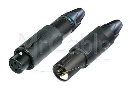 Кабельный разъем (адаптер) XLR, 3-х контактный <гнездо/мама> или <штекер/папа>, convertCON-серия, пол разъема конвертируется скользящим корпусом, конструкция: черный хромированный металлический корпус, контакты - покрытие золото, под пайку, подходит для проводов сечением 2х2.5 мм2 (AWG14), на кабель диаметром (3.5-8.0 мм).