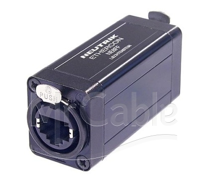 Кабельный адаптер RJ45 EtherCON <гнездо/мама> - <гнездо/мама>, проходной, черный металлический корпус, фиксация замка по технологии "Latch lock", контакты - покрытие золото. Внимание! Совместим с NE8MX *, MRC RE8CN * и стандартными разъемами RJ45 всех категорий