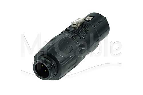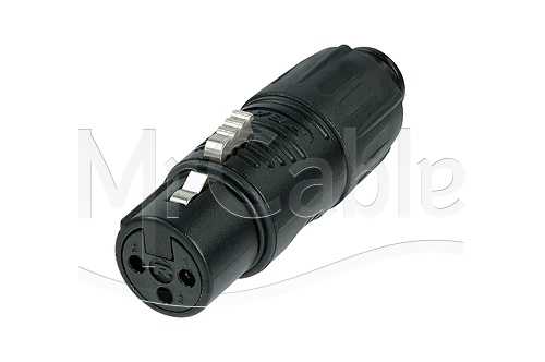 Кабельный адаптер mini XLR, удлинитель, mini XLR3 <штекер/папа> - mini XLR3 <гнездо/мама>, контакты - покрытие золото, цвет корпуса: черный.