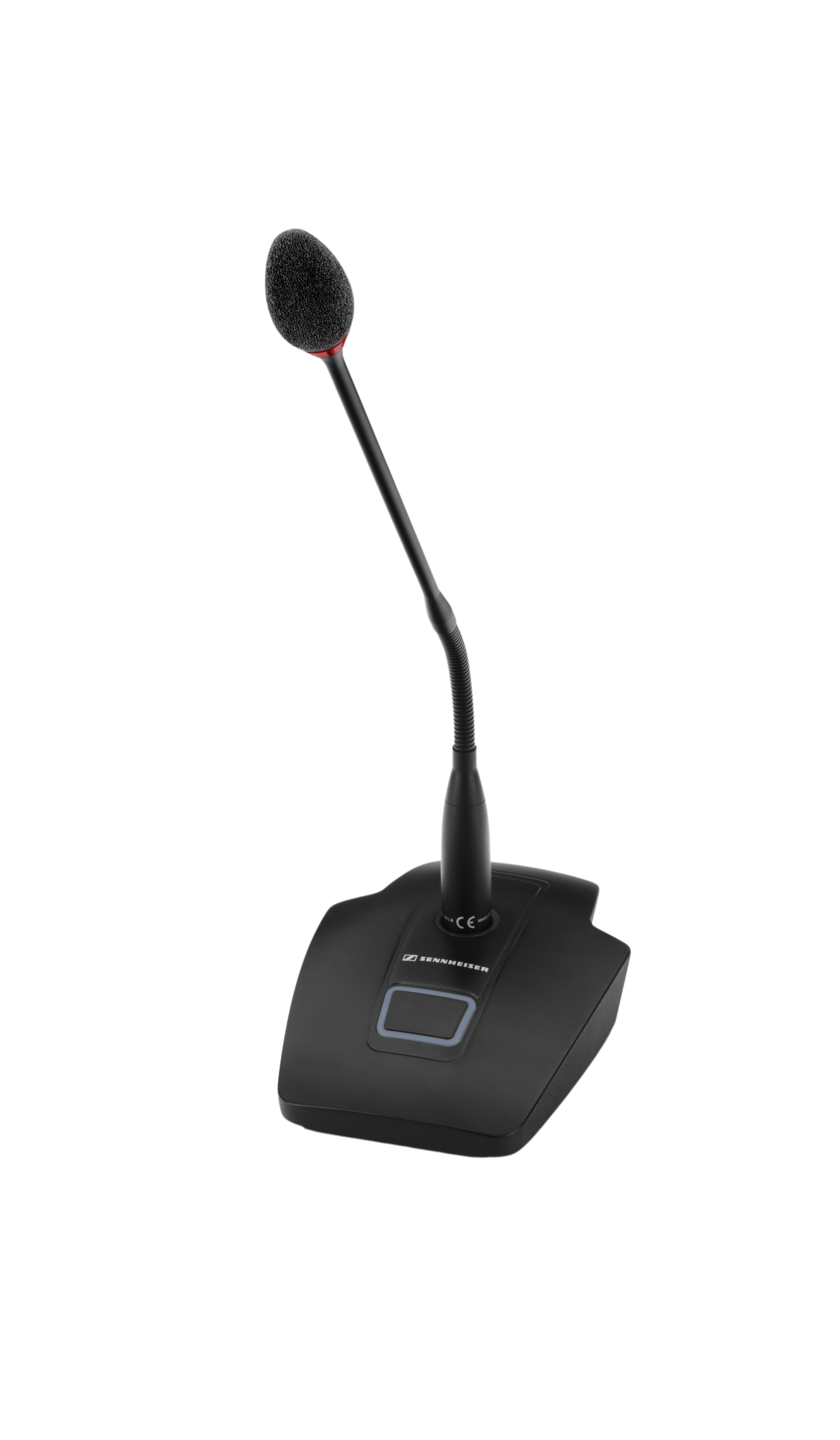 Настольная подставка для микрофонов типа gooseneck с кнопкой. Двухцветное световое кольцо. Разъем XLR-5. Программирование работы кнопки. Логические контакты. Цвет черный.
