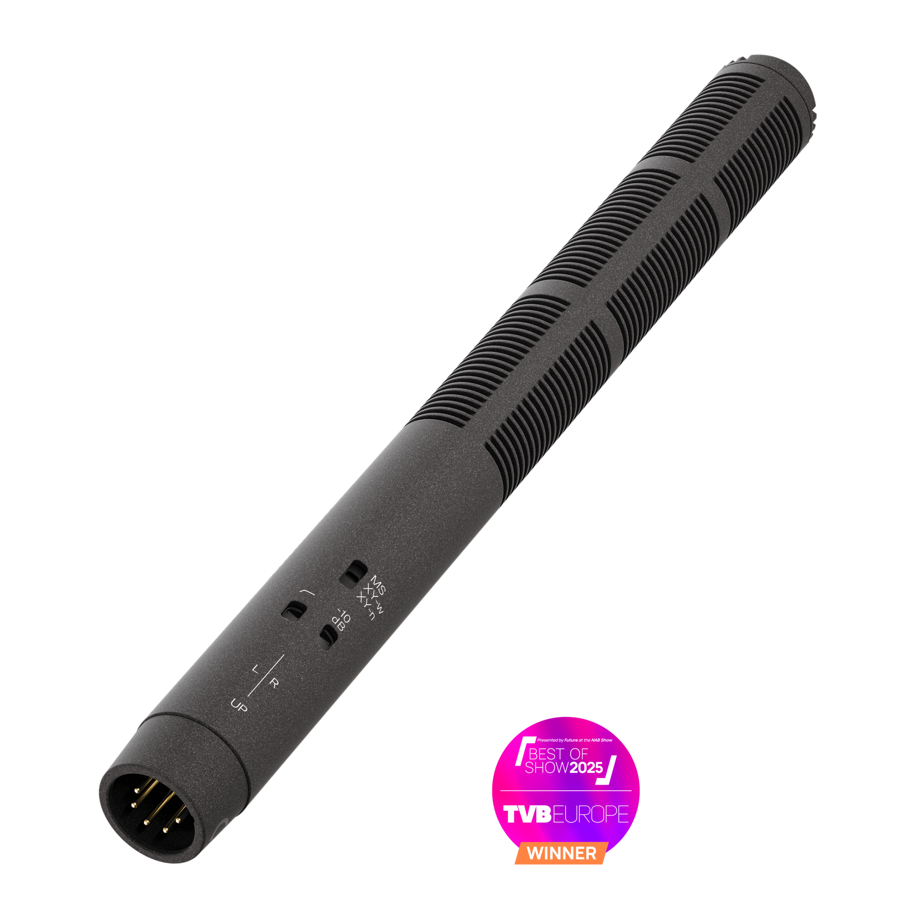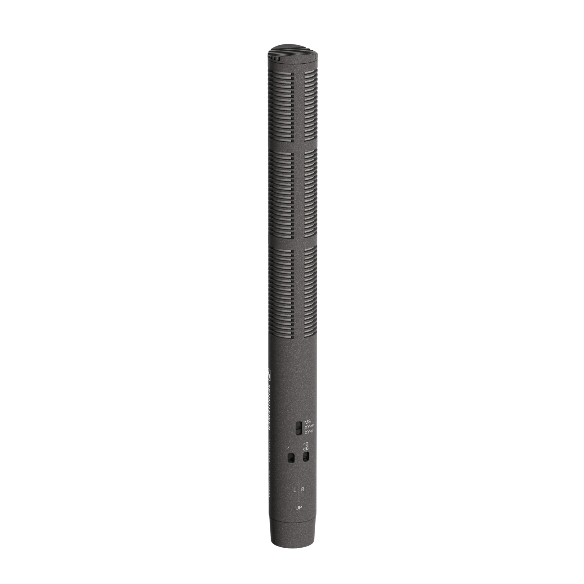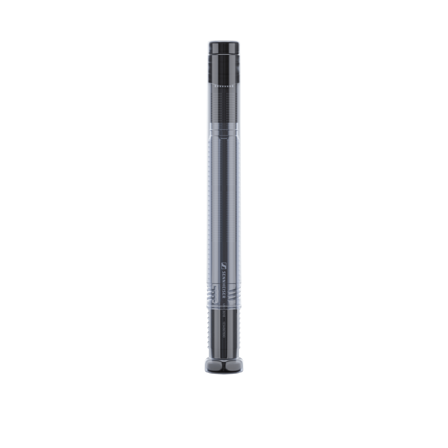 Стерео микрофон-пушка. В комплект входят (1) микрофон MKH 8018, (1) пенопластовый ветрозащитный экран MZW 8018, (1) микрофонный зажим MZQ 100 и (1) адаптер камеры MZR 8000