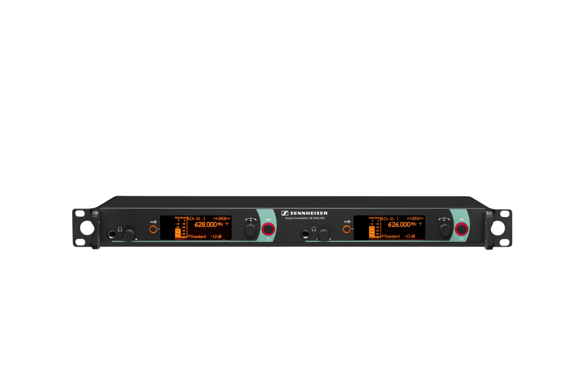 2-канальный стереопередатчик, HDX, Ethernet (WSM), 19 дюймов/1HE, 100–240 В переменного тока, со стержневой антенной, 558–626 МГц