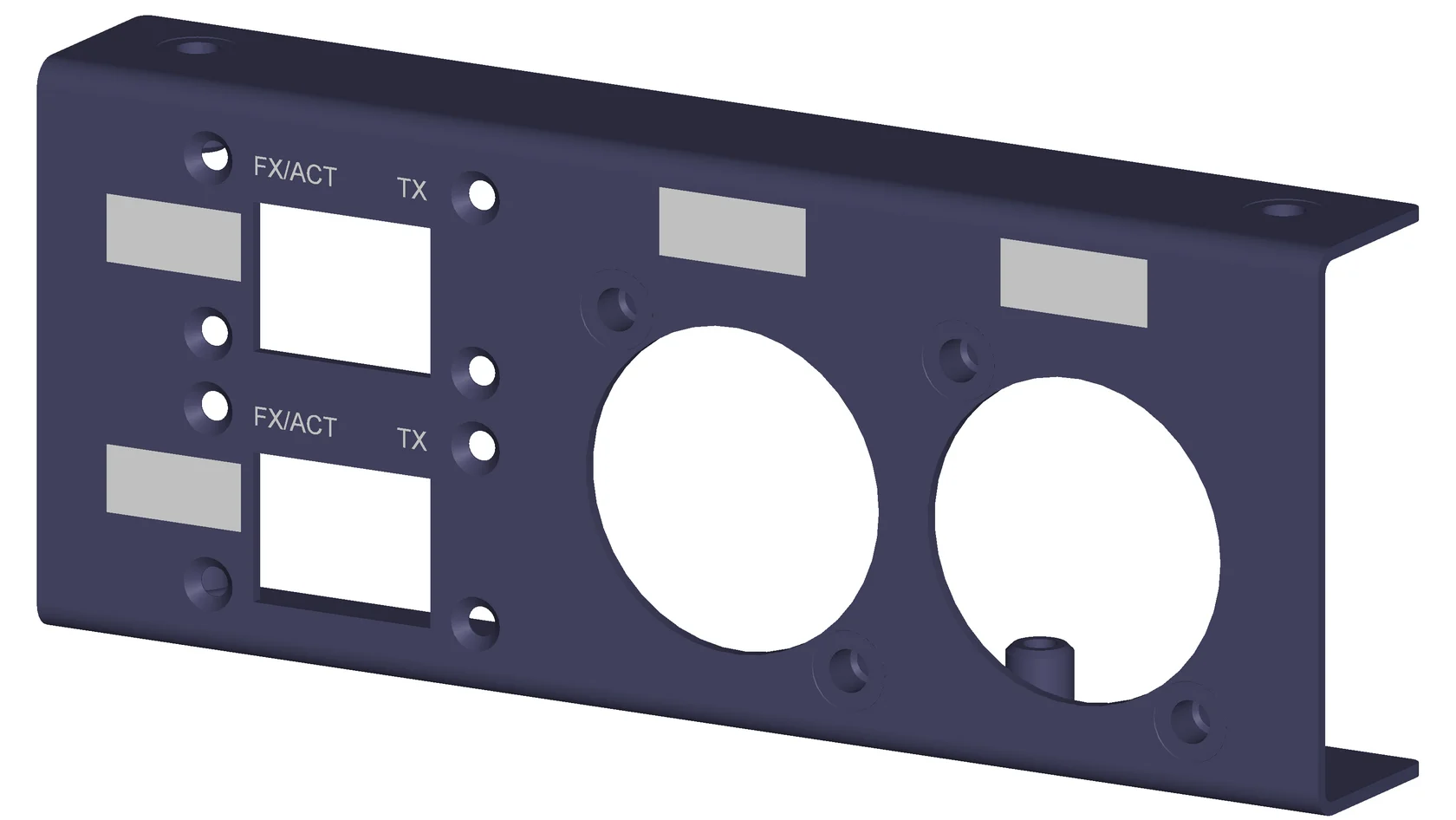 Модульная панель 41-2E2D предназначена для установки 2-х микро медиа конвертеров Gigabit Ethernet и 2-х разъёмов с фланцем D-типа