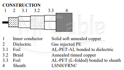 Кабель коаксиальный с малыми потерями, с повышенной помехозащищенностью для аналоговых и цифровых видеосигналов HDTV-SDI/3G/6G/12G, Серия EMC Pro, (3 гб/с одиночный режим до 103 м, 6 гб/с одиночный режим до 71 м. ), тип Mini RG59/U, структура: 0.65/2.9 (1х0.58 мм), проводник - цельный /голая медь, AWG 23, диэлектрик проводника газовспененный полиэтилен (Gas Injected PE), трехслойный экран - алюминиевая фольга + плетеный из луженой меди + алюминиевая фольга по технологии Duobond Plus® (100%+80%+100%), t (-30°C +70°C), диаметр кабеля 4.04 мм, оболочка (FRNC/LSZH-C Dca), стандарт: IEC 60332-1-2, 60332-3-24, 75 Ом