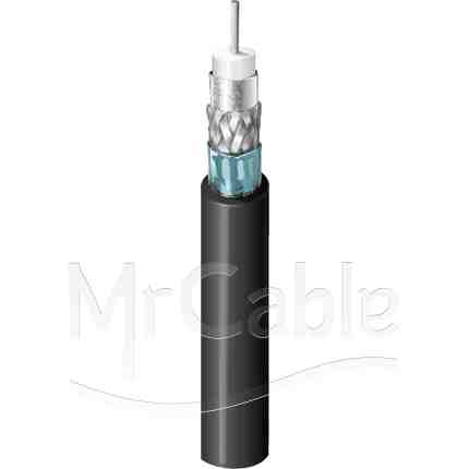 Кабель коаксиальный высокочастотный с малыми потерями для передачи 4K UHD, 12 GHz, (6Гб/s одиночный режим до 144 м, 12Гб/s одиночный режим до 98 м), серия RG-7, структура: 1.3/5.72 (1х1.3 мм), проводник - цельный /посеребренная омедненная сталь, 16 AWG, диэлектрик проводника газовспененный (FHDP), трехслойный экран - алюминиевая фольга и полиэфирная лента склеенная с диэлектриком (100%) + плетеный из луженой меди (95%) + алюминиевая фольга (100%), t (-30°C +75°C), диаметр кабеля 8,12 мм, оболочка ПВХ (PVC), 75 Ом