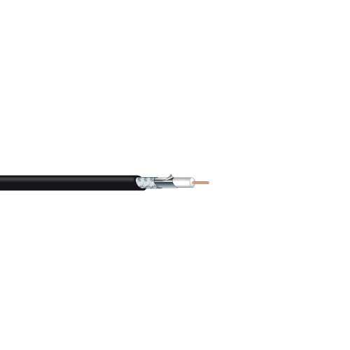 Кабель коаксиальный инсталляционный с малыми потерями для аналоговых и цифровых видеосигналов 4K UHD, 12G-SDI, (HD-SDI до 25 м, 3G-SDI до 35 м), серия (RG59), структура: 0.75/3.3 (1х0.75 мм), проводник - цельный /голая медь, AWG 21, диэлектрик проводника (HFPE), двухслойный экран - алюминиевый + плетеный из луженой меди (100%+84%), t (-20°C +75°C), диаметр кабеля 5.5 мм, оболочка (PVC), 75 Ом