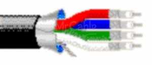 Многоканальный эластичный компактный коаксиальный кабель для передачи RGB сигналов, серия (RG179), структура: 4 канала 0.3/1.42/3.1 (4х7*0.10 мм), проводник - витой /луженая медь, AWG 4х30, диэлектрик проводника (FHDPE), двухслойный экран - алюминиевый + плетеный из луженой меди (100%+90%), общий экран - алюминиевый (100%), PVC, t (-40°C +60°C), диаметр кабеля 7.9 мм, оболочка (PVC), 75 Ом