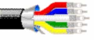 Многоканальный эластичный компактный коаксиальный кабель для передачи RGB сигналов, серия (RG179), структура: 5 каналов 0.33/1.42/2.59 (5х7*0.10 мм), проводник - витой /луженая медь, AWG 5х30, диэлектрик проводника (FHDPE), двухслойный экран - алюминиевый + плетеный из луженой меди (100%+90%), общий экран - алюминиевый (100%), PVC, t (-40°C +60°C), диаметр кабеля 8.59 мм, оболочка (PVC), 75 Ом