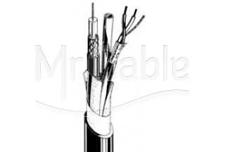 Кабель комбинированный; структура: «1 видео mini RG59 (1x 0.54/3.1 mm) + 2 аудио (2x2x0.18 mm²)»; экранирование видео - (плетеный, медный 94%); экранирование аудио - (алюминиевый); t (-20°C +60°C), диаметр кабеля 9.7 мм, оболочка (PVC)