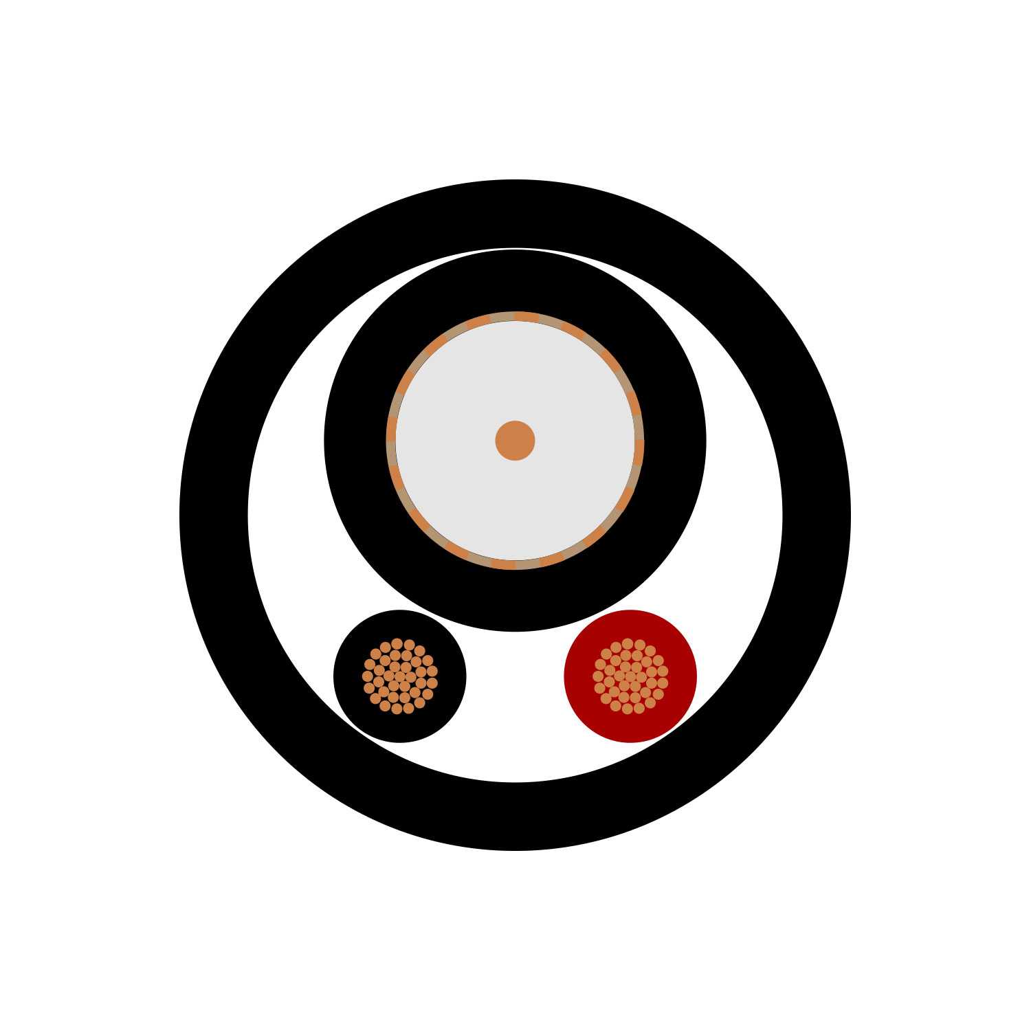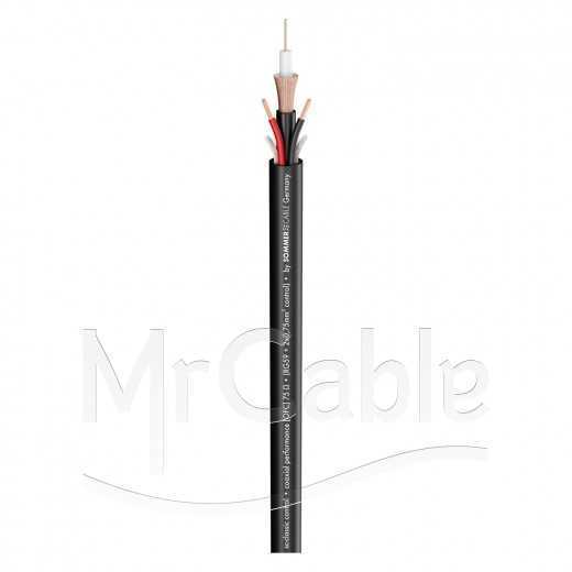 Кабель комбинированный; структура: «1 видео RG59 (1x 0.6/3.7 mm) + 2 управление (2x0.75 mm²)»; экранирование видео - (плетеный, медный); t (-20°C +70°C), диаметр кабеля 10.5 мм, оболочка (PVC)