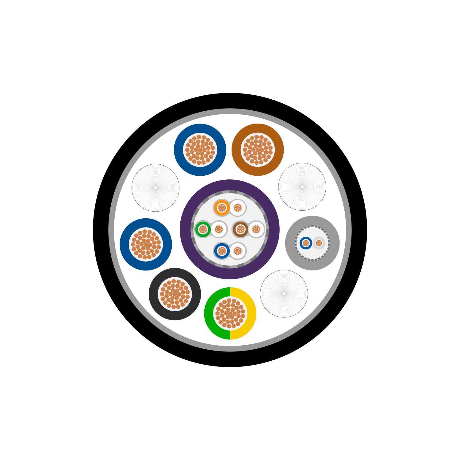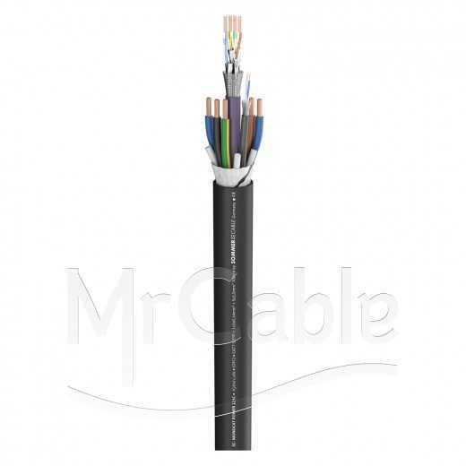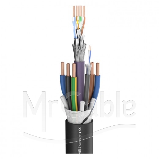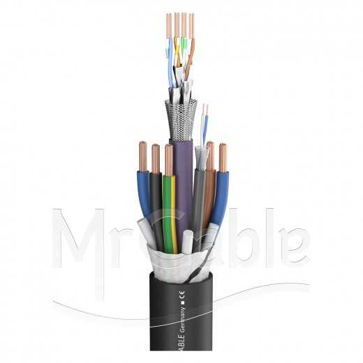 Кабель комбинированный; структура: «1 питание (5x2.5 mm²) + 1 витая пара CAT.7 (4Х2Х0.48 mm) + 1 пара DMX или AES/EBU (1x2x0.14 mm²)»; экранирование AES/EBU, DMX - (витой, луженая медь); экранирование CAT.7 - (S/FTP); t (-25°C +70°C), диаметр кабеля 17.3 мм, оболочка (FR-PVC)