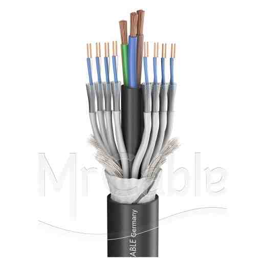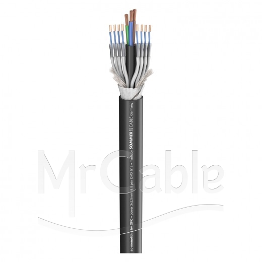 Кабель комбинированный; структура: «1 питание (3x2.5 mm²) + 8 пар DMX или AES/EBU (8x2x0.14 mm²)»; экранирование AES/EBU, DMX - (витой, луженая медь); t (-30°C +70°C), диаметр кабеля 17.4 мм, оболочка (PVC)