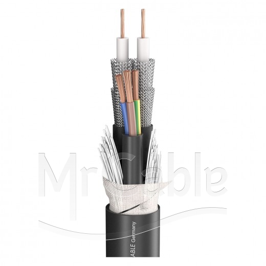 Кабель комбинированный; структура: «2 видео (1x 1.2L/4.8 mm) + 1 питание (3x1.5 mm²)»; экранирование видео - (двухслойный - плетеный, луженая медь); t (-20°C +75°C), диаметр кабеля 18.8 мм, оболочка (PVC)