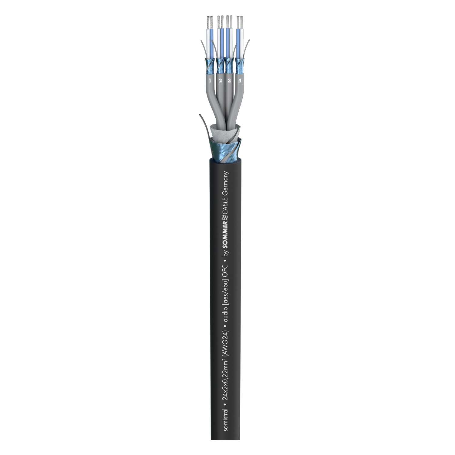 Мультикор цифровой для аналоговых и цифровых аудио сигналов AES/EBU, мобильный, студийный, инсталляционный, передача сигнала на большие расстояния, прочный на разрыв, эластичный, структура: 4 пары 4х2х0.22 мм2 (2х7*0.20 мм), проводник - витой /бескислородная луженая медь (OFC), AWG 24, диэлектрик проводника - вспененный полиэтилен (FPE), изоляция пары - (PVC) с нумерацией и цветовой кодировкой каждого канала, экран пары - алюминиевый на полиэстровой основе AL/PT (100%) + провод заземления из луженой меди, общий экран - алюминиевый на полиэстровой основе AL/PT (100%) + провод заземления из луженой меди, t (-30°C +70°C), диаметр кабеля 11.0 мм, оболочка (S-PVC), 110 Ом