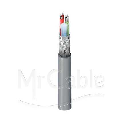 Кабель управления, для передачи данных RS-232/422, низкоемкостной, витая структура пары, структура: 2х2x0.22 мм2 (1х7*0.20) AWG 24, проводник - витой /луженая медь, диэлектрик проводника Datalene® (FPE), экран пары - алюминиевый Beldfoil® (100%) + провод заземления из луженой меди AWG 24, общий экран - алюминиевый Beldfoil® + плетеный из леженой меди (100%+65%), t (-40°C +60°C), диаметр кабеля 8.7 мм, оболочка (PVC)
