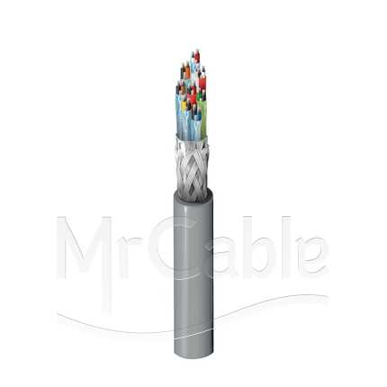 Кабель управления, для передачи данных RS-232/422, низкоемкостной, витая структура пары, структура: 8х2x0.22 мм2 (1х7*0.20) AWG 24, проводник - витой /луженая медь, диэлектрик проводника Datalene® (FPE), экран пары - алюминиевый Beldfoil® (100%) + провод заземления из луженой меди AWG 24, общий экран - алюминиевый Beldfoil® + плетеный из леженой меди (100%+65%), t (-40°C +60°C), диаметр кабеля 12.1 мм, оболочка (PVC)
