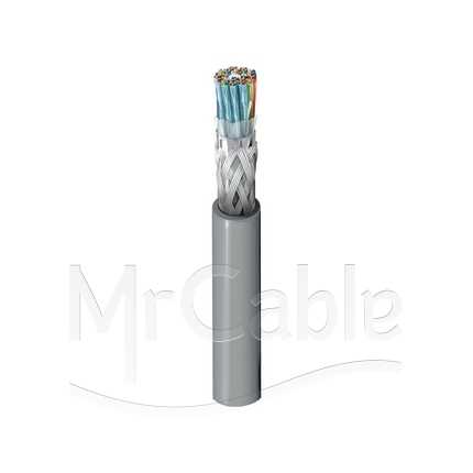 Кабель управления, для передачи данных RS-232/422, низкоемкостной, витая структура пары, структура: 25х2x0.22 мм2 (1х7*0.20) AWG 24, проводник - витой /луженая медь, диэлектрик проводника Datalene® (FPE), экран пары - алюминиевый Beldfoil® (100%) + провод заземления из луженой меди AWG 24, общий экран - алюминиевый Beldfoil® + плетеный из леженой меди (100%+65%), t (-40°C +60°C), диаметр кабеля 20.8 мм, оболочка (PVC)