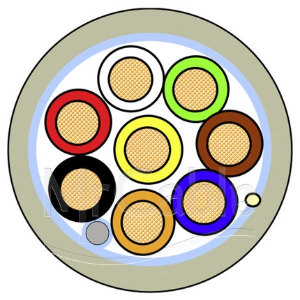 Кабель для управления и контроля, структура: 8x1.22 мм (1х7*0.41 мм) AWG 18, проводник - витой /голая медь, диэлектрик проводника (PP), общий экран - алюминиевый Beldfoil® (100%), t (-30°C +70°C), диаметр кабеля 6.3 мм, оболочка (FRNC/LSZH), стандарт: IEC 60332-1