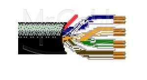 Кабель "Витая пара", CAT 5e, сдвоенный, скорость передачи данных 1 Гбит/с, структура: 4х2х0.51 (1х0.51 мм), проводник - цельный /голая медь, 2х4 спаянные пары (24 AWG), частота (350 MHz), неэкранированный U/UTP, t (-20°C +80°C), диаметр кабеля 5.1х10.5 мм, оболочка (PVC).