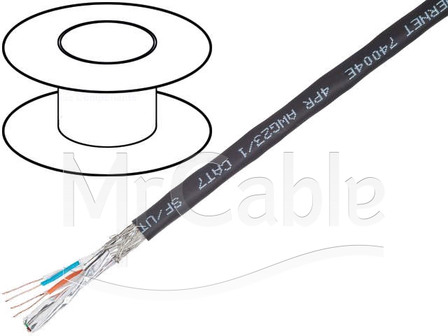 Кабель "Витая пара", CAT 7, инсталляционный, для сетей DataTuff® Industrial Ethernet, скорость передачи данных 10 Гбит/с, структура: 4Х2Х0.57 (1х0.57 мм), проводник - цельный /голая медь, 4 пары (23 AWG), частота (1000 MHz), экранированный S/FTP (экран пары - алюминиевый 100% + общий плетеный из луженой меди 65%), t (-40°C +80°C), диаметр кабеля 8.0 мм, оболочка (PVC) - устойчив к УФ и маслостойкий