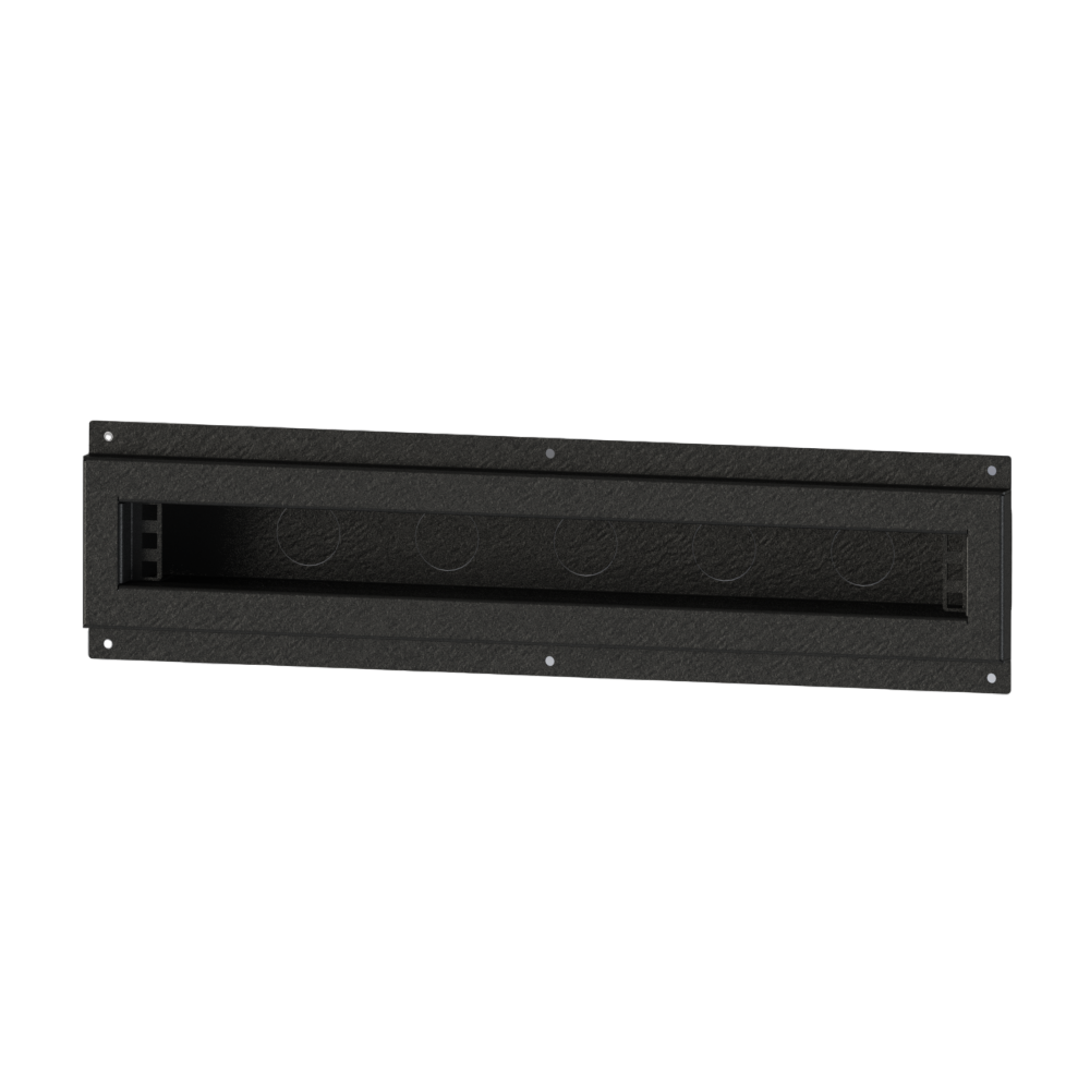 Лючок встраиваемый 1U, настенный, открытый. Габариты (ДхШхГ) 532х133х83 мм. Посадочный размер (ДхШхГ) 495х75х60 мм. Количество кабельных заглушек в дне 5 шт. Количество кабельных заглушек в боковине 5 шт. Тип устанавливаемых панелей: рэковая панель 19", высота 1U. В комплекте: 3 сальника PG29. Цвет: черный муар. Вес- 2,88 кг