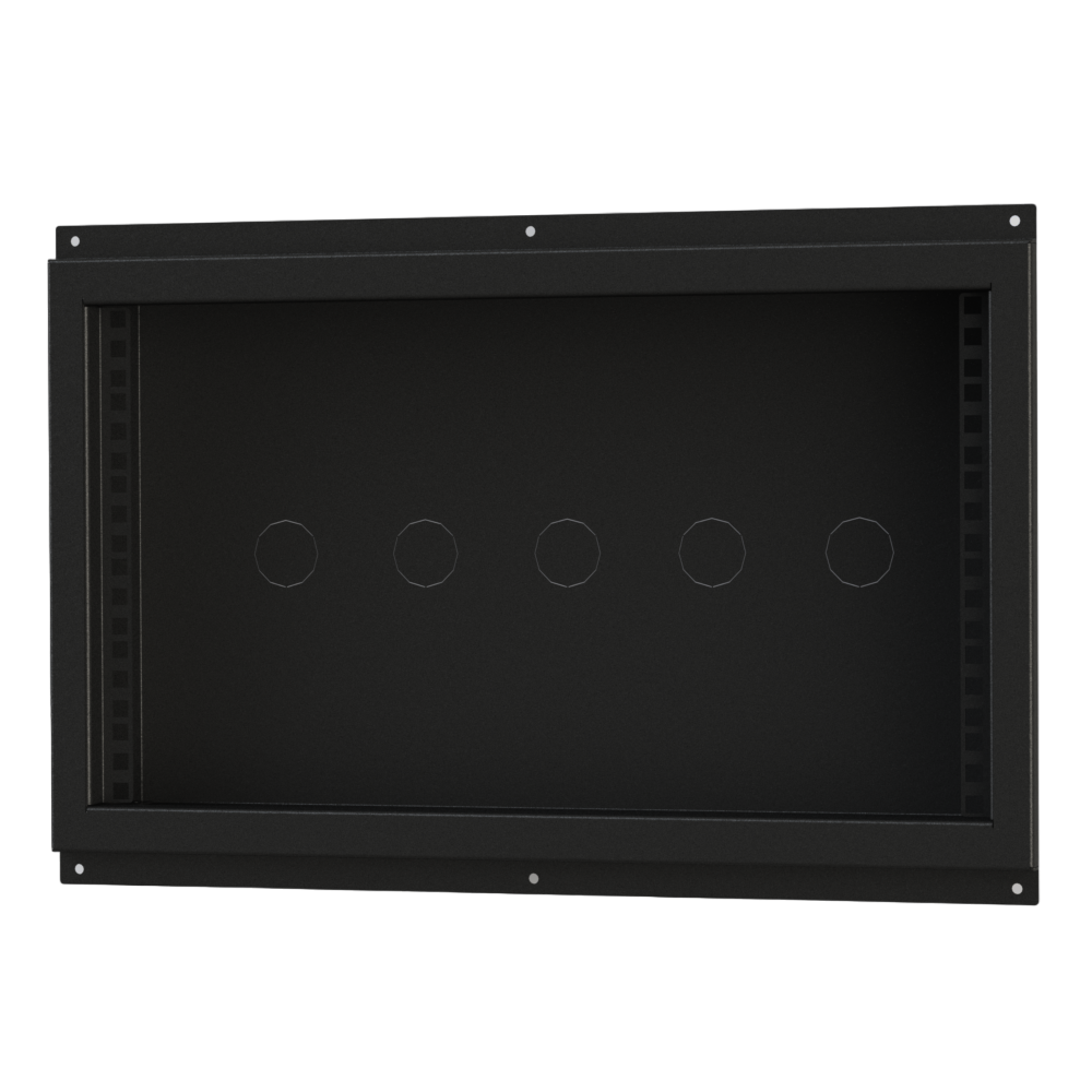 Лючок встраиваемый 6U, настенный, открытый. Габариты (ДхШхГ) 532х355х83 мм. Посадочный размер (ДхШхГ) 495х285х75 мм. Количество кабельных заглушек в дне 5 шт. Количество кабельных заглушек в боковине 5 шт. Тип устанавливаемых панелей: рэковая панель 19" до 6U. В комплекте: 3 сальника PG29. Цвет: черный муар. Вес- 4,43 кг
