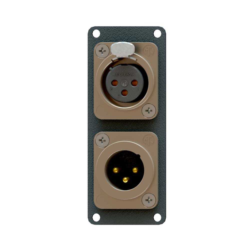 Панель для настольных лючков серии TH, (1x XLR F/1x XLR M). Предустановленные разъемы: Neutrik NC3FD-L-1, NC3MD-L-1. Размер панели: 80х31,9 мм