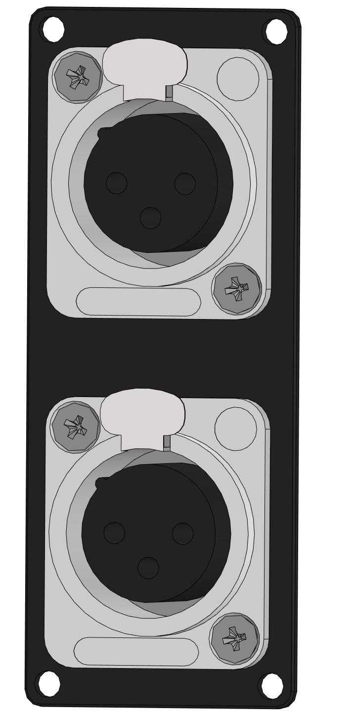 Панель для настольных лючков серии TH, (2x XLR F). Предустановленные разъемы: Neutrik NC3FD-L-1. Размер панели: 80х31,9 мм