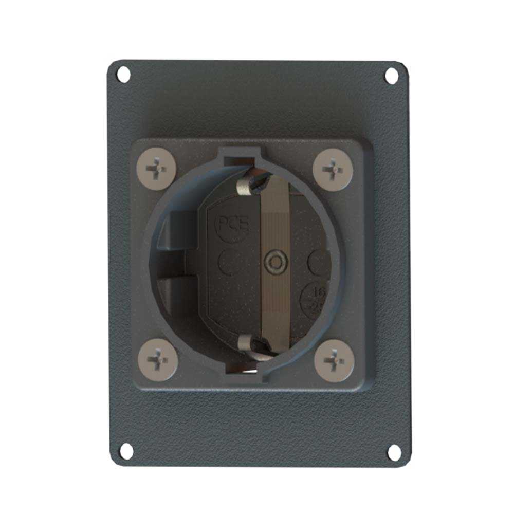 Панель для настольных лючков серии TH, (1хSchuko 16A). Предустановленные разъемы: PCE 10584-0s. Размер панели: 80х63,9 мм