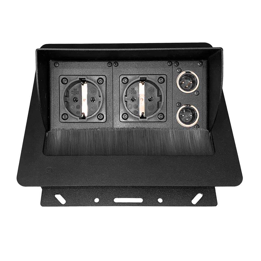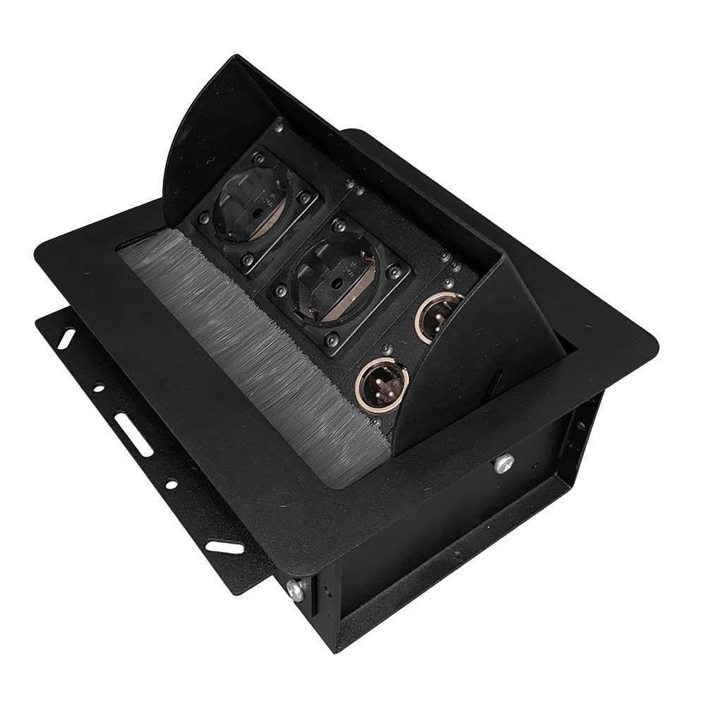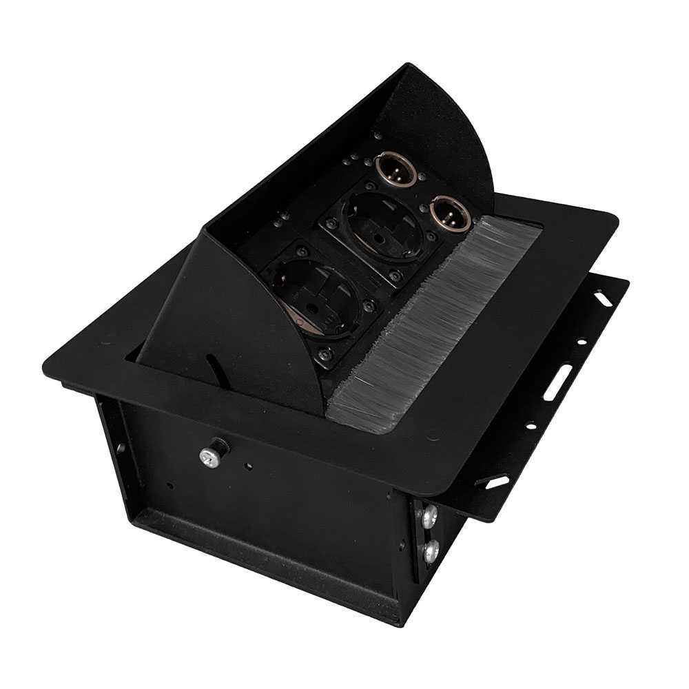 Лючок настольный, встраиваемый. Габарит (ДхШхГ): 222х203х95мм. Посадочный размер: 208х185мм. Габарит с монтажной пластиной: 208х230мм. Защита от попадания пыли. Фиксация в крайних положениях. Количество монтируемых модулей стандарта MPT: 5шт. Вес- 2,6 кг