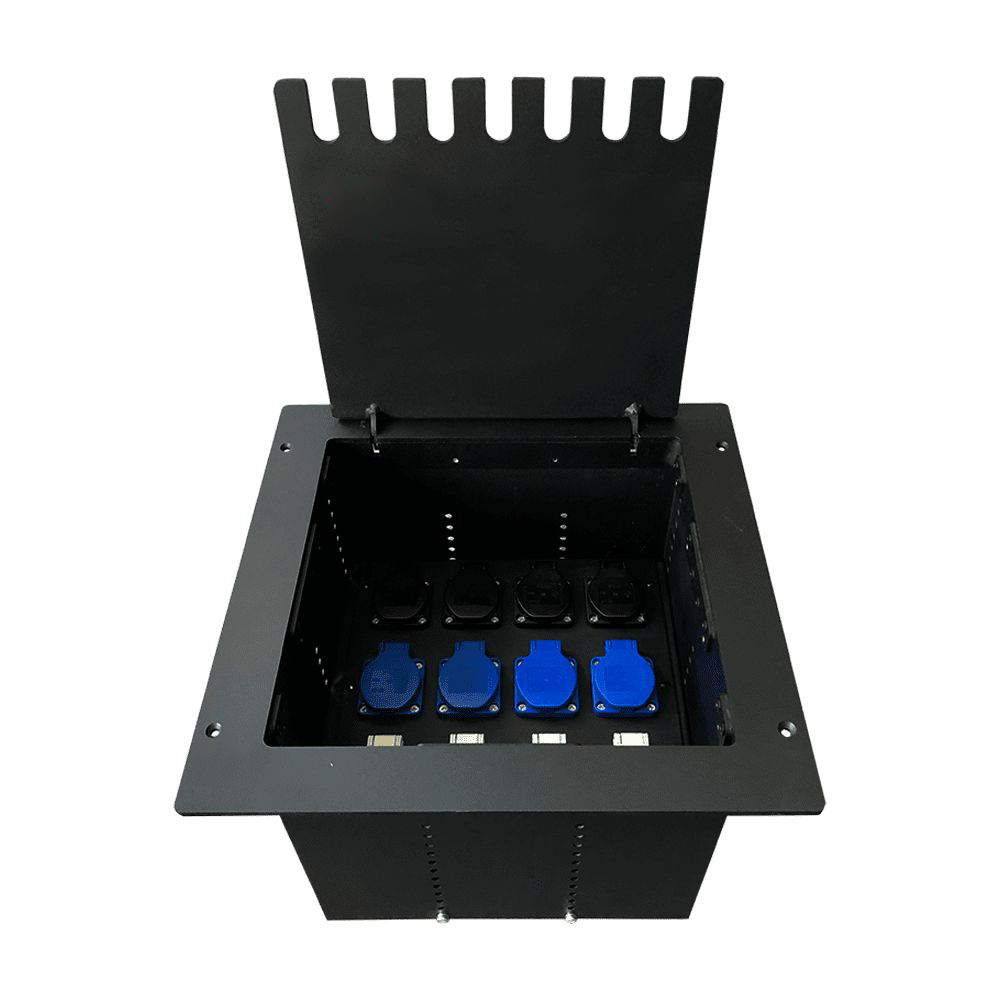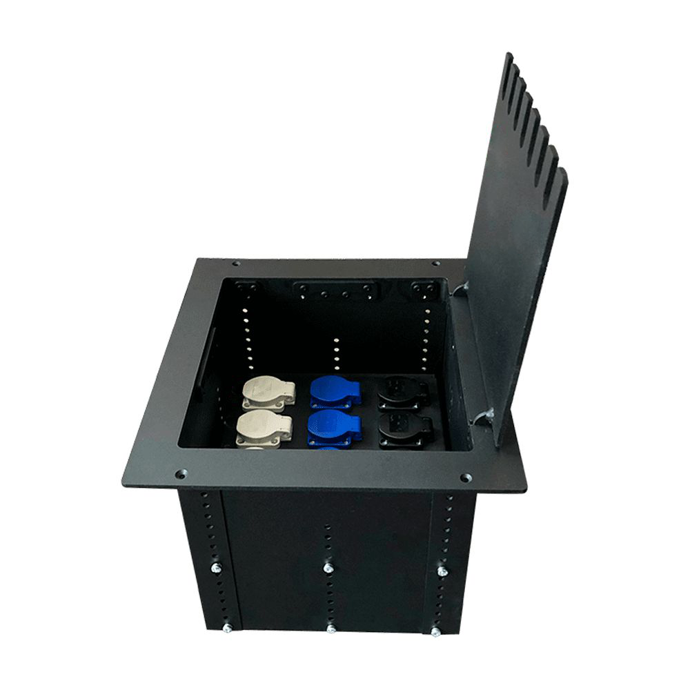 Лючок сценический обрезной. Габариты (ДxШхГ): 360х340х316 мм. Посадочный размер 308х282 мм (с винтами под установочную пластину). Установочная панель (259х272 мм) в комплект не входит. Количество кабельных прорезей в крышке - 7 шт. Возможность уменьшения глубины устройства. Вес- 10,3 кг