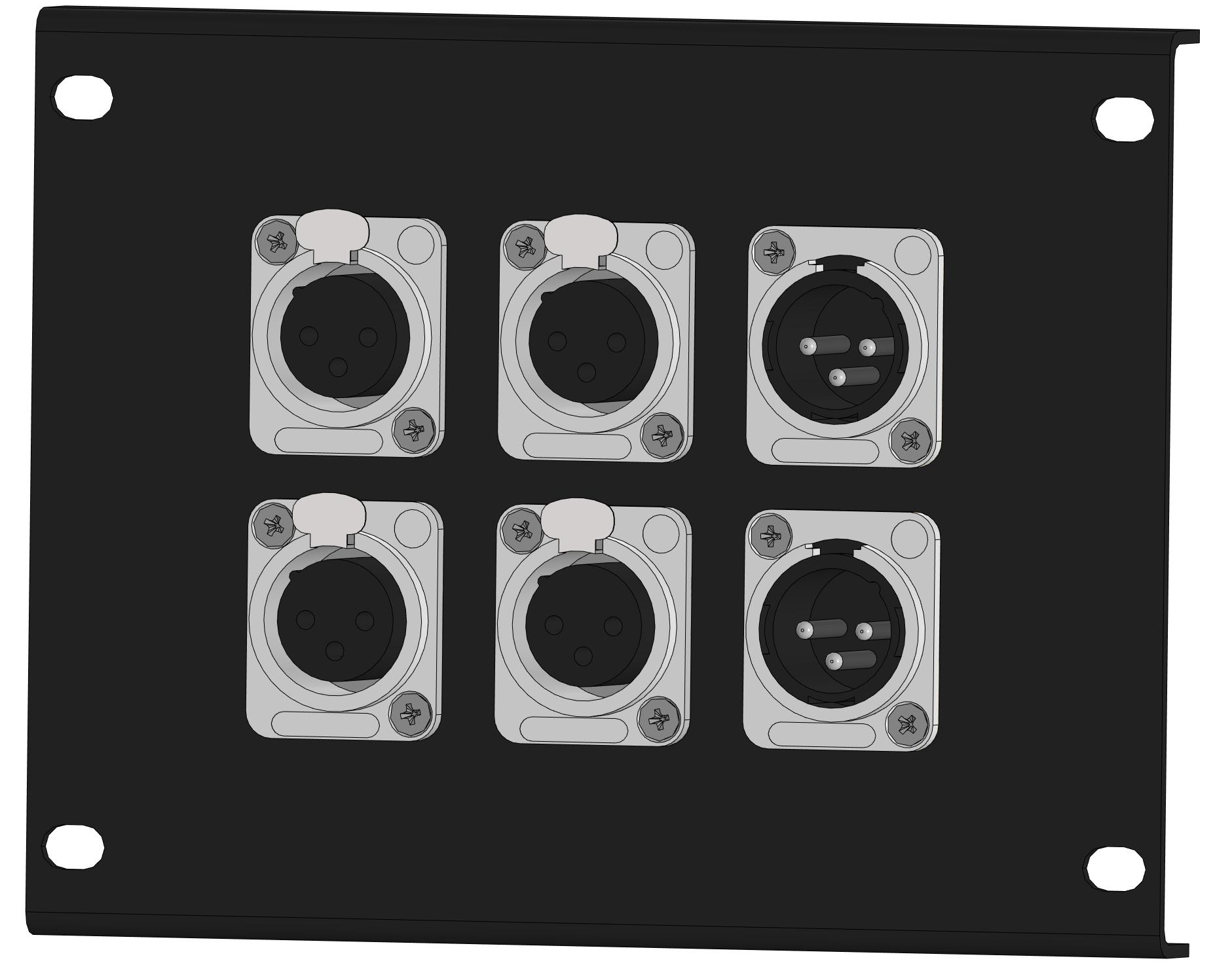 Панель для напольного люка FH 01, (4x XLR F/2x XLR M). Предустановленные разъемы: MRC RXDN-3F, MRC RXDN-3M. Размер панели: 155х120 мм
