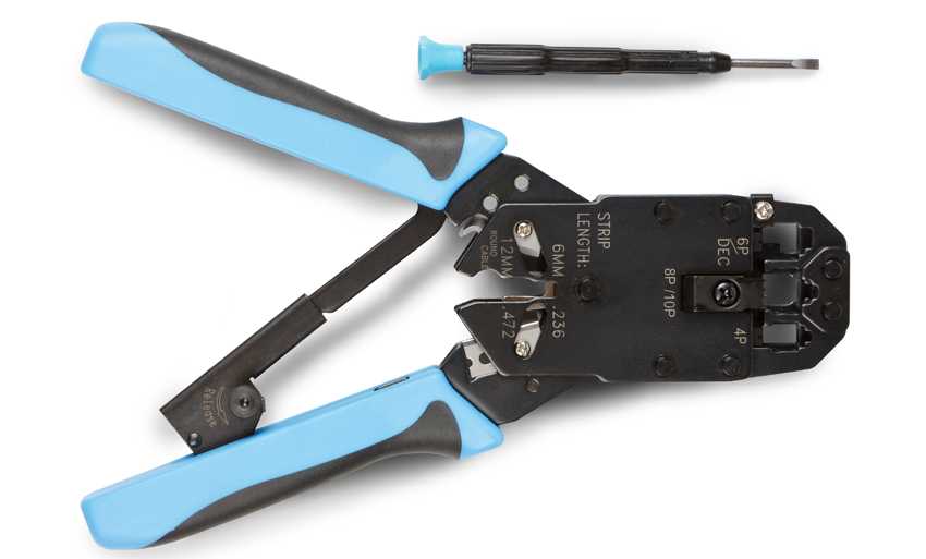 Инструмент профессиональный с храповым механизмом для обжима разъемов «RJ-45 (8P8C), RJ-12 (6P6C), RJ-11 (4P4C), RJ-50 (10P10C)», материал - металл /термопластичная резина. Применение: обжим модульных разъемов формата RJ, зачистка круглых и плоских кабелей, обрезка кабеля и проводников. Сменные ножи: HT-RB0809C. В комплекте: отвертка с прямым шлицом. Цвет: синий