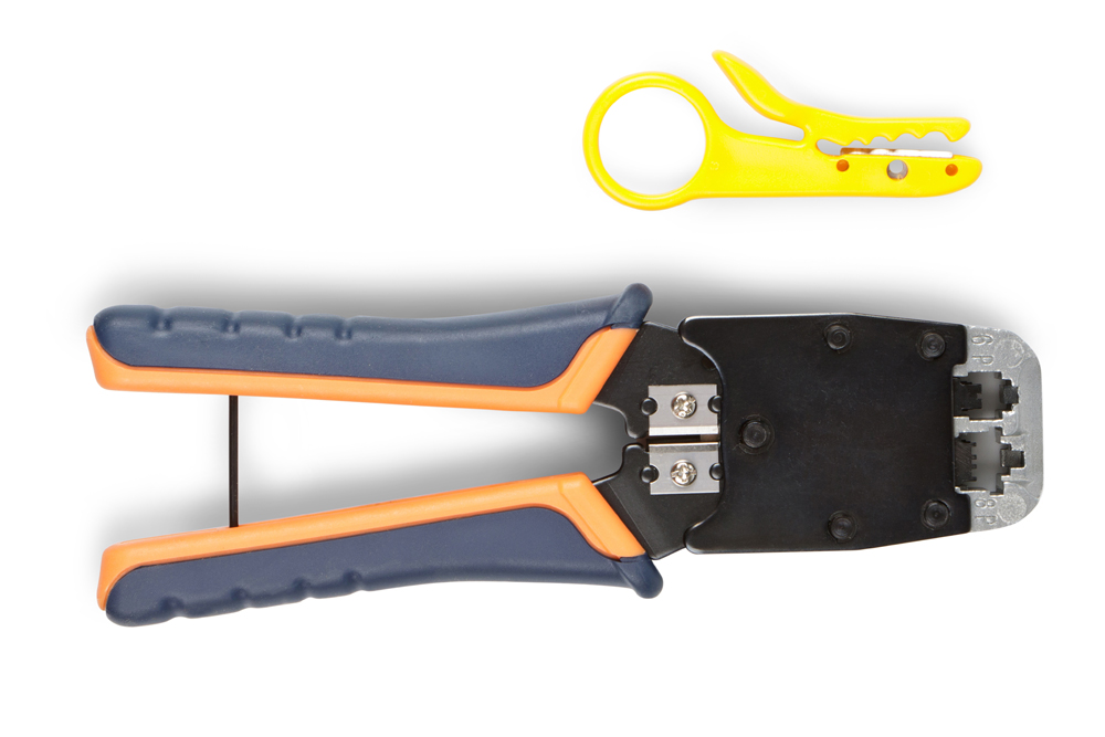Инструмент профессиональный для обжима разъемов «RJ-45 (8P8C), RJ-12 (6P6C), RJ-11 (4P4C)», многопозиционный регулируемый механизм обжима, материал - металл /термопластичная резина. Применение: обжим модульных разъемов формата RJ, зачистка круглых и плоских кабелей, обрезка кабеля и проводников. Сменные ножи: HT-200SC. Поставляется с инструментом для разделки кабеля. Цвет: синий/жёлтый