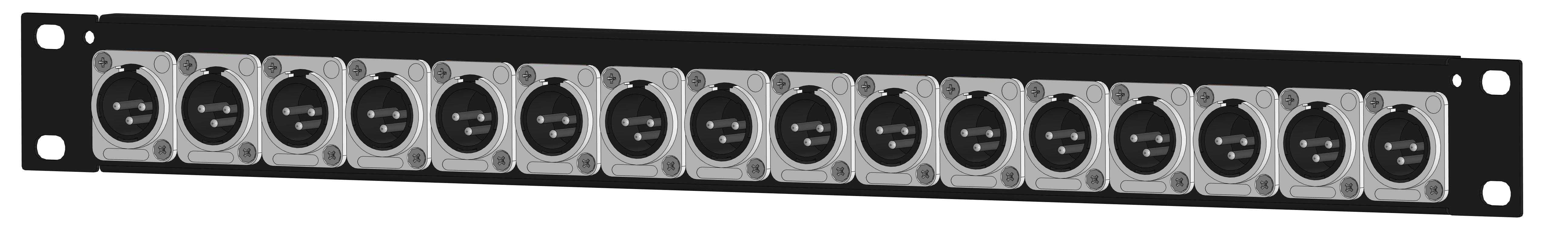 Оконечная аудио панель 16-кан. (16-OUT), Standart, (16х XLR штекер), 1U, 19" для звуковых сигналов-XLR, D-посадка. Комплектующие: разъемы MRC RXDN-3M; панель MrCable P1U-16D