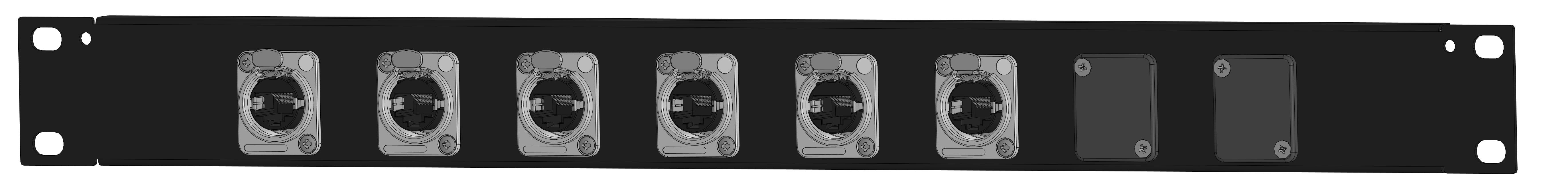 Оконечная аудио панель 6-кан. (6-IN), Standart, (6х XLR гнездо), 1U, 19" для звуковых сигналов-XLR, D-посадка. Комплектующие: разъемы MRC RXDN-3F; пластиковая заглушка MRC RACDU-PL; панель MrCable P1U-08D