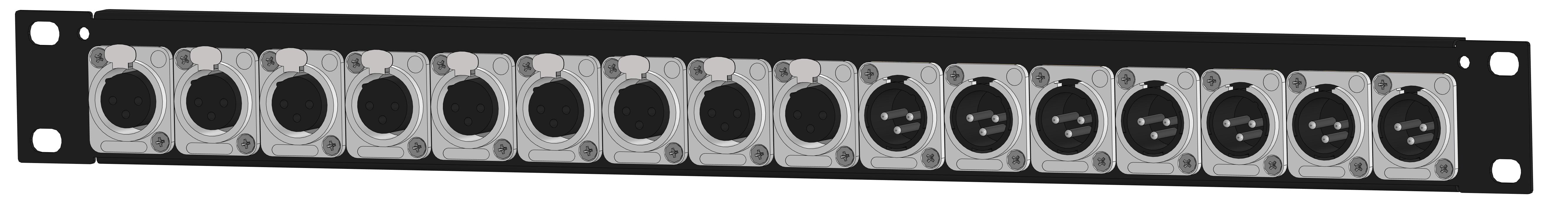 Оконечная аудио панель 16-кан. (9-IN/7-OUT), Standart, (9х XLR гнездо/7х XLR штекер), 1U, 19" для звуковых сигналов-XLR, D-посадка. Комплектующие: разъемы Neutrik NC3FD-L-1; NC3MD-L-1; панель MrCable P1U-16D
