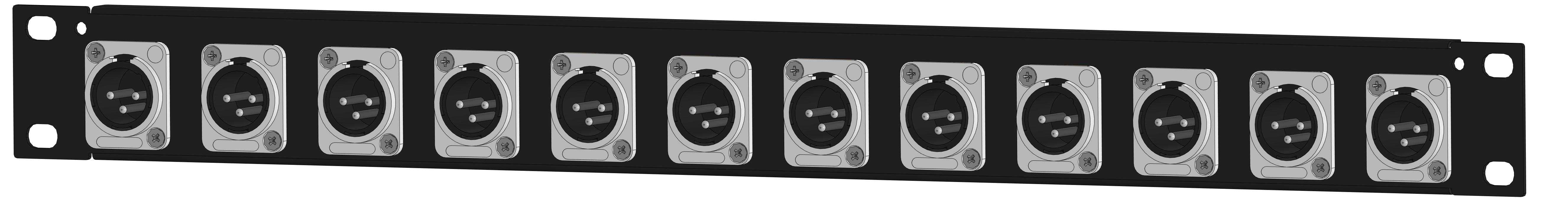 Оконечная аудио панель 12-кан. (12-OUT), Standart, (12Х XLR штекер), 1U, 19" для звуковых сигналов-XLR, D-посадка. Комплектующие: разъемы MRC RXDN-3M; панель MRC ERP1U-12D