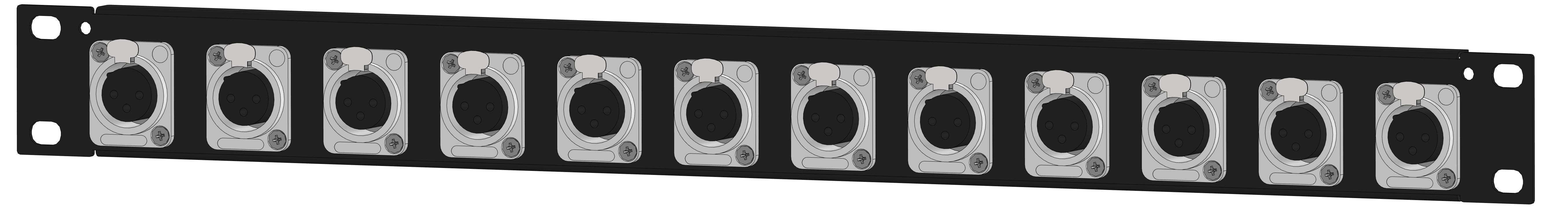 Оконечная аудио панель 12-кан. (12-IN), Standart, (12Х XLR гнездо), 1U, 19" для звуковых сигналов-XLR, D-посадка. Комплектующие: разъемы MRC RXDN-3F; панель MRC ERP1U-12D