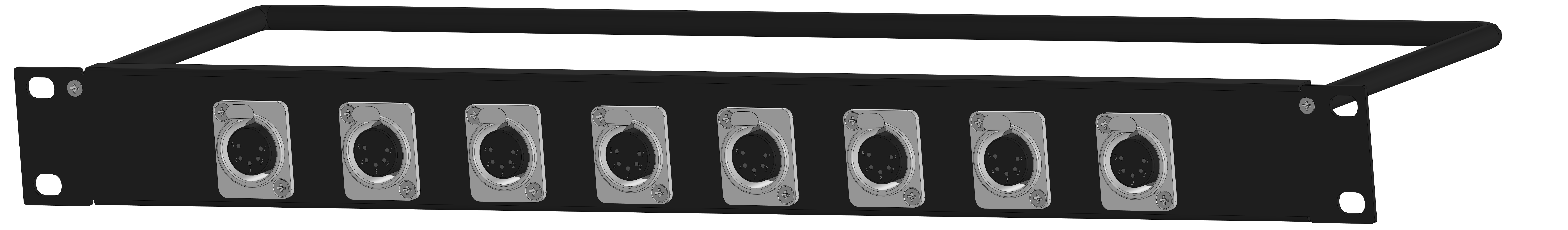 Оконечная DMX панель 8-кан. (8-IN), Standart, (8х XLR5 гнездо), 1U, 19", D-посадка. Комплектующие: разъемы Neutrik NC5FD-L-1; панель MRC ERP1U-08D; Кабель-трейсер MRC CT-105-JA (глубина 10,5 см)