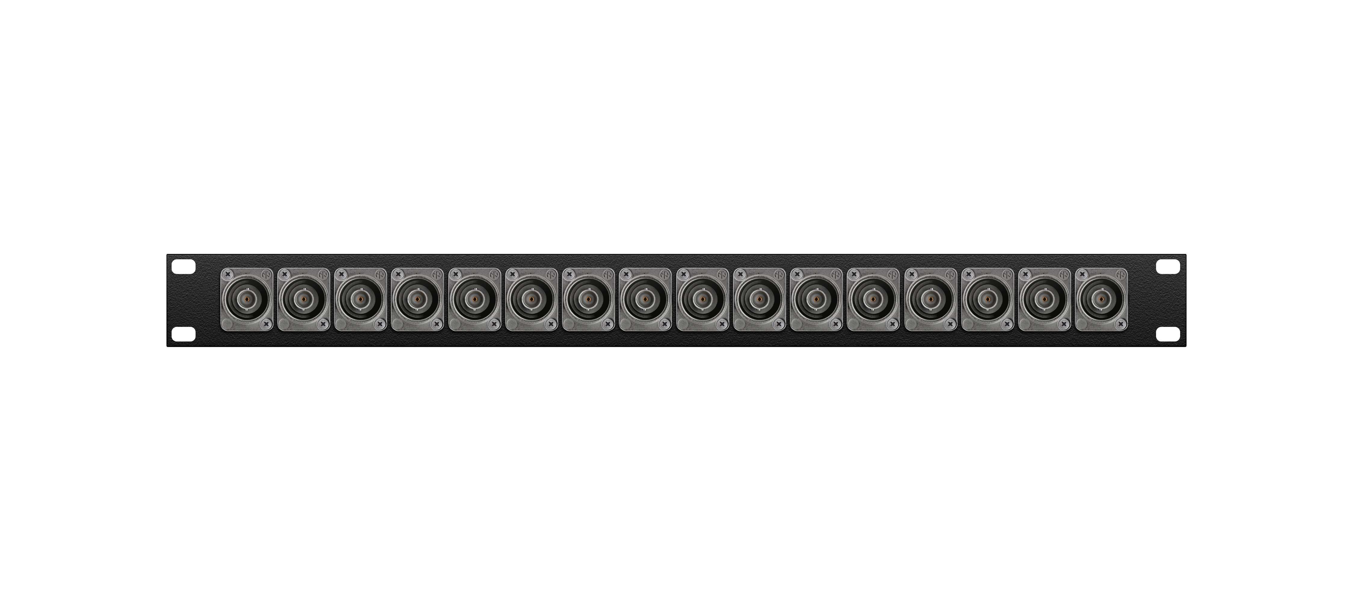 Оконечная видео панель 16-кан. BNC- проходное гнездо, 1U, 19", Standart 4K/8K, для аналоговых и цифровых видеосигналов UHD-BNC, D-посадка. Комплектующие: разъемы Neutrik NBB75DFGX; панель MRC ERP1U-16D