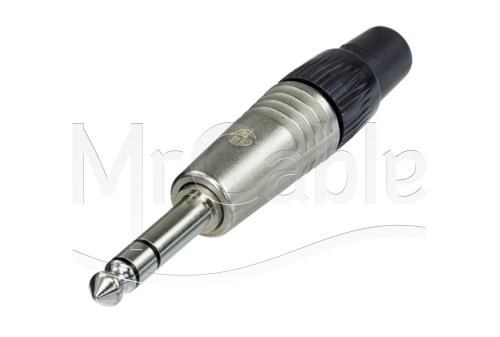 Кабельный разъем 1/4" Jack 6.35 мм, профессиональный, 3-х контактный (стерео) <штекер/папа>, металлический никелированный корпус, контакты - покрытие никель, под пайку, зажимной патрон, полиуретановый колпачок черного цвета, на кабель диаметром (4.0-7.0 мм).