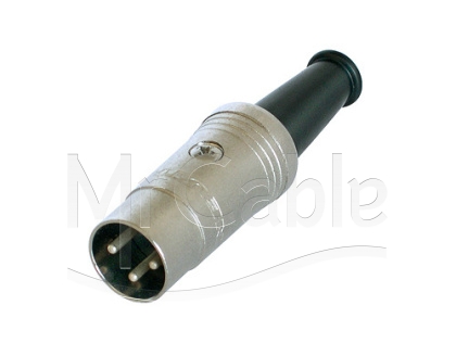 Кабельный разъем DIN, 3-х контактный, <штекер/папа>, металлический никелированный корпус, контакты - покрытие серебро, резиновый хвостовик, на кабель диаметром 5.0 мм.